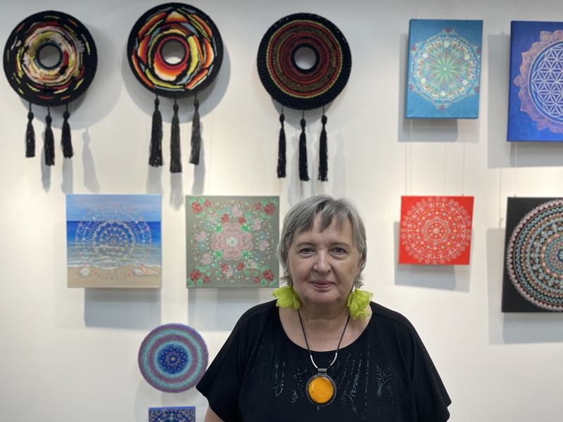 Specjalnością Grażyny są mandale, które realizuje w dwóch technikach: malarstwie (akryl, akwarela) oraz unikatowym tkaniu.